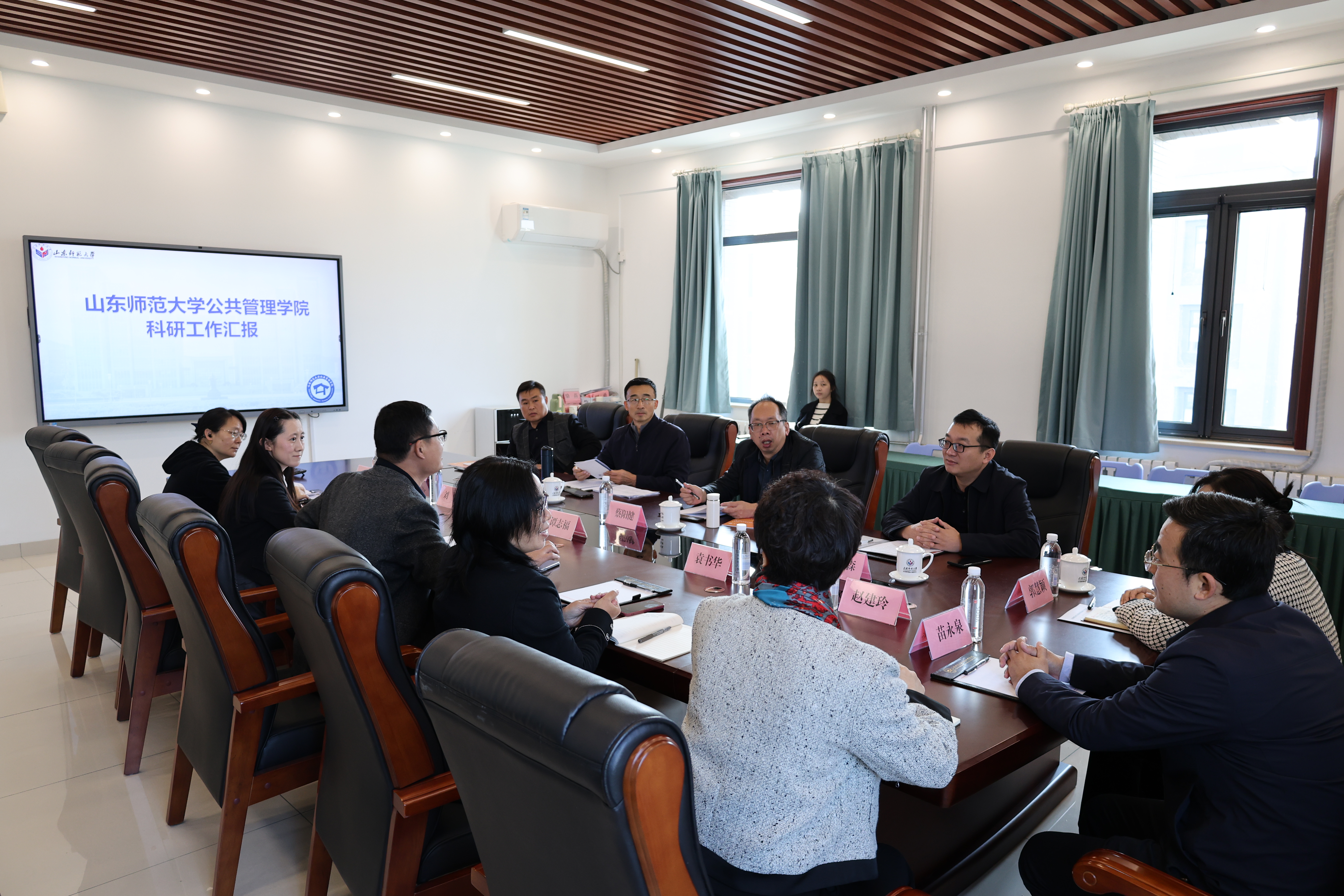 首先,谭志福围绕学院学科建设、人才队伍与科研项目等方面作了系统汇报。蔡阳健在听取汇报后,对学院近年来的办学成效表示充分肯定,并就进一步推动学科高质量发展提出明确要求:一要强化科研组织与资源保障,优化资源配置,稳定支持科研团队建设,营造潜心治学的良好生态;二要聚焦公共管理学科特色与优势,明确主攻方向,精准发力,推动学科内涵式发展;三要加强科研成果转化与社会服务,完善人才培养机制,增强学科对经济社会发展的支撑力与贡献度。