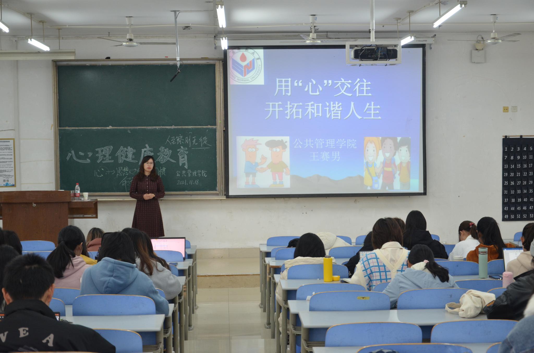 讲座伊始,王赛男指出人际交往是自己与自己、自己与他人、自己与社会三种关系的整合。她从四个方面展开此次讲座:第一,人际交往概述。在介绍人际交往基本概念基础上,王赛男指出人际交往与生活各方面息息相关,她向同学们分析了埃里克森的8个认同危机,帮助同学们正确定位自己的心理状态。第二,人际交往的影响因素。王赛男从接近效应、曝光效应、光环效应等方面解释了影响人际交往的因素,并通过提出“你喜欢交哪种类型的朋友”这一问题与同学们开展互动,指出人际交往中存在的共通性,她强调人际交往重在“双赢”,同学们在人际交往中要重视相似性与互补性的相辅相成。为使同学们深入了解生活中人际冲突及解决方法,王赛男通过播放关于大学生宿舍矛盾的视频,引发同学们的思考。第三,友情与爱情。王赛男详细阐述了两者区别,她指出大学生应以学业为重,不应因感情耽误学业、忽略友情,要正确处理好爱情与学业、与友情的关系。第四,保持良好人际关系的途径。王赛男通过列举人际关系中的原则及大学生交往中的不良心理,提出建立良好的人际关系的途径,另外,她简单向同学们补充了ABCDEF型人格类型及交往方式,帮助同学们更好地进行人际交往。至此,本次讲座圆满结束。
