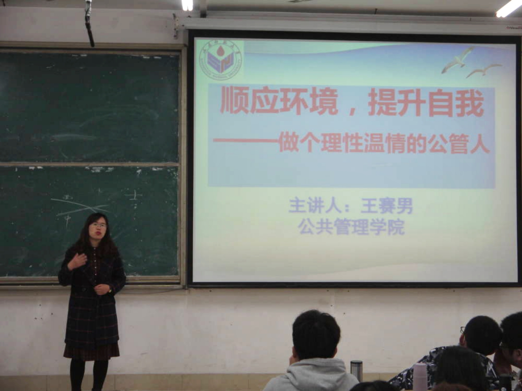 讲座伊始,王赛男以同学自主介绍“我是谁”的方式活跃现场气氛,由“我是谁”引出本次讲座的主要内容——正确认识自我,并从三个方面展开此次讲座:第一,认识自我,顺应环境。王赛男首先从自我意识概念、自我意识结构、正确认识自我来阐释自我意识的内涵,借助埃里克森的8个认同危机来描述自我意识的发展,利用韩乔窗口理论帮助同学们正确认识自我。除此之外,王赛男还借助弗洛伊德理论来阐释完善自我——人体结构理论本我、自我和超我三个知识理论,并解释了这三者之间的关系与人格结构的动力过程导致的外显行为。第二,管理情绪,提高情商。王赛男通过列举林黛玉与薛宝钗以柳絮作诗的故事,以此彰显情绪管理的重要性,并介绍了几种管理情绪、提升情商的方法,如艾利斯的理性情绪ABC理论等。第三,职业生涯规划与可持续发展。王赛男向同学们简单讲述了职业规划的方法,并指出情商在职业生涯规划与成功中的重要性。至此,本次心理健康教育讲座圆满结束。