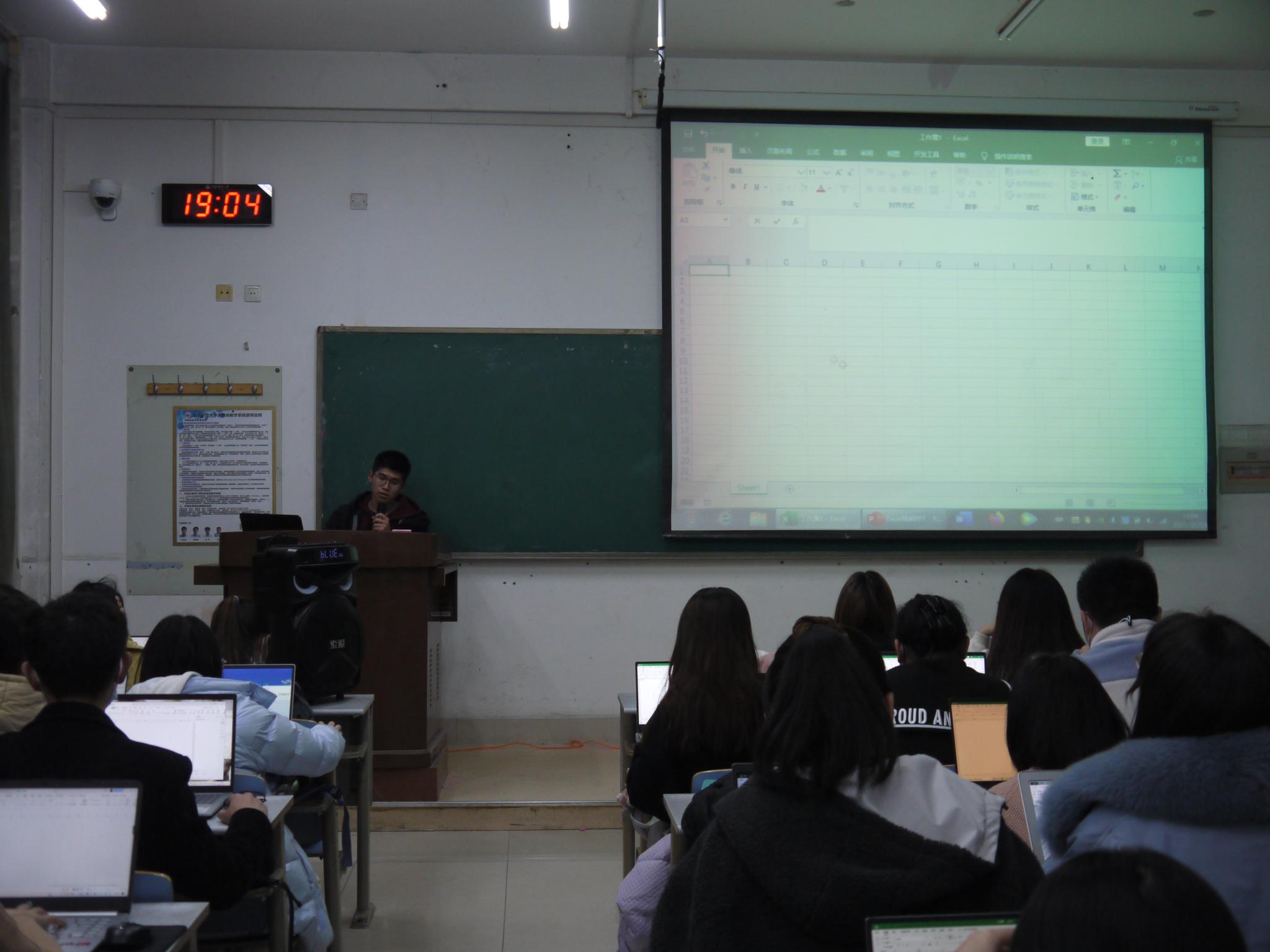 活动伊始,肖悦简要介绍了本次活动的目的及流程。随后,李洪光对Excel软件的相关操作进行详细讲解,他首先强调了Excel在工作中的实用性,介绍并演示了数值录入、表格内容排序与筛选、图表创建等操作技巧,同学们认真听讲并跟随讲解进行自主操作。李洪光重点讲解了工作表的制作方法,例如:图表的插入、移动、命名与复制等技巧,他强调,制作过程中要注意对工作表进行整理与修饰以保持美观,并对字体字号调整、底色填充、行高与列宽设置等软件功能进行操作演示。活动最后,李洪光鼓励同学们利用空余时间积极进行Excel操作方法的自主研究与学习,以便于日常工作的顺利进行。至此,本次活动圆满结束。