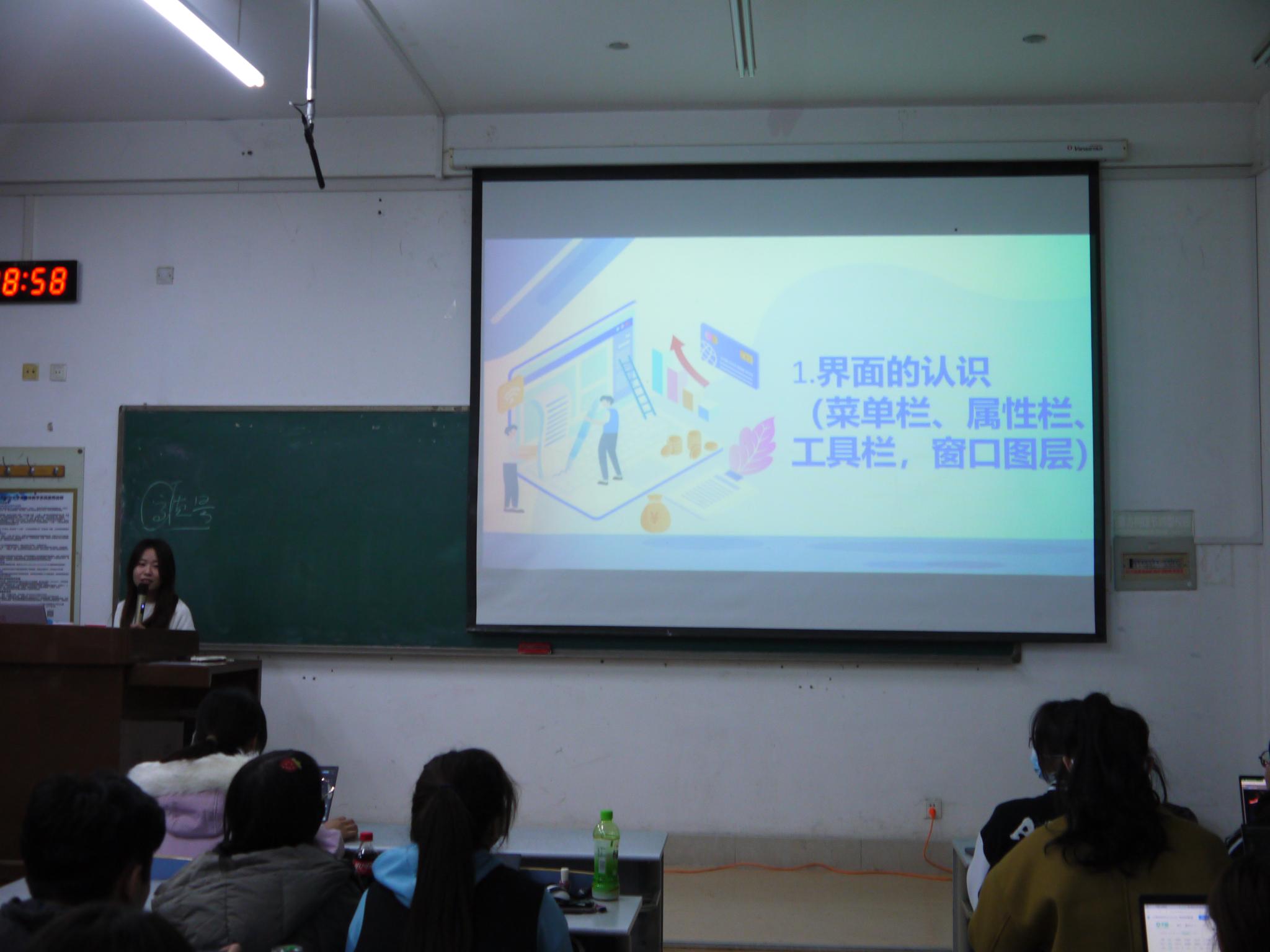 活动伊始,田思雨简单介绍了源文件与工程文件的区别、jpg与PNG文件的用途等PS相关知识,并以会徽为例使同学们对图层的概念有了一定了解。除此之外,田思雨还具体讲解了一些PS的操作技巧,涉及菜单工具栏、编辑窗口等多方面内容。黄璐潞则通过“公管学院致远讲坛”系列活动的海报引出有关海报制作的技巧,着重介绍了操作工具如移动工具、文字工具的具体使用方法。最后由谭世婕重点讲解了如何进行人像修图,她从对比度、抠图、整体风格、面部美化等方面进行了详细讲解,同学们纷纷表示受益匪浅。至此,本次活动圆满结束。