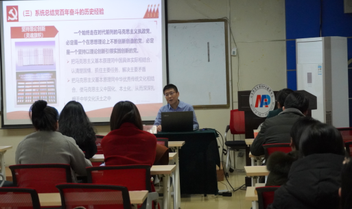 为深入学习宣传贯彻党的十九届六中全会精神,12月16日下午,我校马克思主义学院院长王增福教授受邀在千佛山校区逸夫楼411室为我院教工党员作十九届六中全会精神宣讲报告,报告由党委副书记张卫东主持,学院全体教工党员到会聆听。
