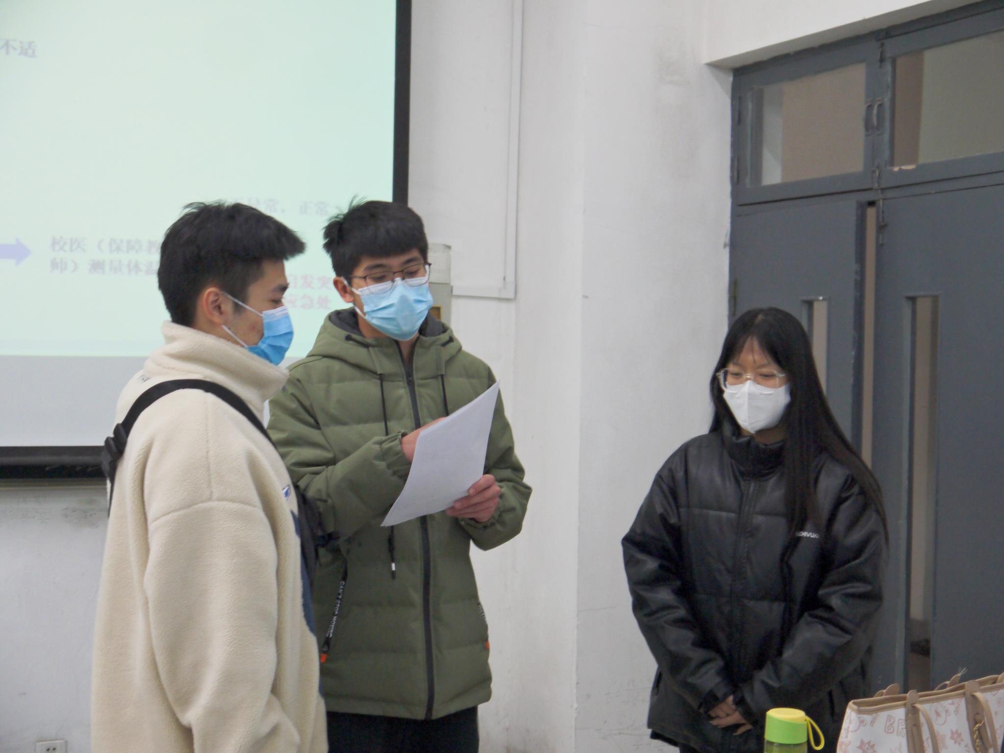 为进一步做好常态化疫情防控工作,提高学生骨干应急防疫处理能力,3月17日,英国365集团于文渊楼C区139教室开展了疫情防控应急演练和培训,学院2021级辅导员张静带队参加,第十一届学生会主席吕科栋主持本次活动,2019级、2020级、2021级本科学生干部代表到场参与。