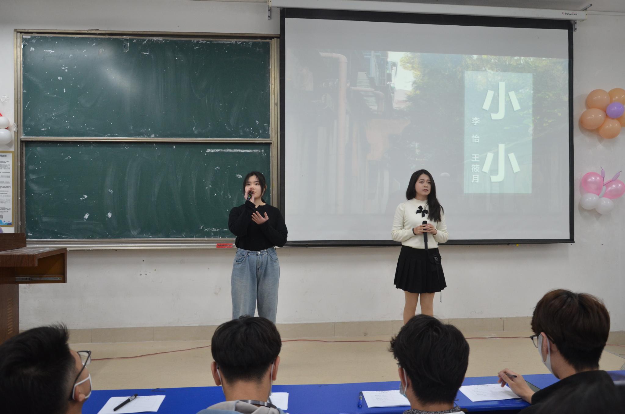 经过线上预选赛,共有14名选手进入本次复赛。比赛伊始,主持人陈心雨、付云旗首先表达了对到场嘉宾及观众的欢迎,并介绍了本次比赛的规则。本次比赛分为两轮,在第一轮组合赛中,柔情悠长的《知否知否》、婉转动人的《身骑白马》、忧郁感人的《someone you loved》……一首首悦耳动听的歌曲如同一幅幅精彩纷呈的画卷徐徐展现在观众面前。在第二轮个人赛中,《someone like you》《love story》《再见》等歌曲引起观众阵阵掌声,将现场气氛推向一个又一个的高潮。串场环节中,学院第十一届学生会副主席、2020十大歌手季军潘怡然为我们带来了歌曲《星辰不坠落》,学院第九届学生会文体活动部部长胡强然演唱歌曲《致你:所爱》,现场氛围高涨。根据两轮比赛选手所得分数相加,最终马文捷、王思琳、翟一为、戴佳燕、刘芳余、李健一、李怡、王筱月、陈佳宁、杜光凯等十位同学晋级决赛。