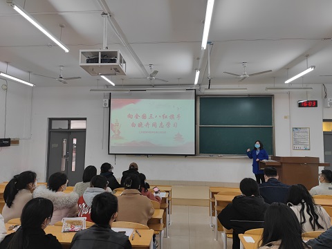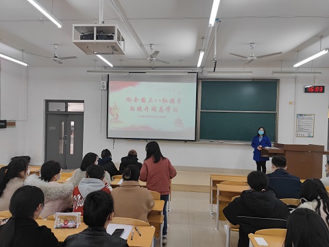 白雪无私悲草木,佳卉有节傲寒春,2022年3月28日下午4点,英国365集团学生第三党支部于文渊楼B区102教室举办“向全国三八红旗手白晓卉同志学习”主题党日活动,党支部书记李存同志主持,党支部成员参加。
