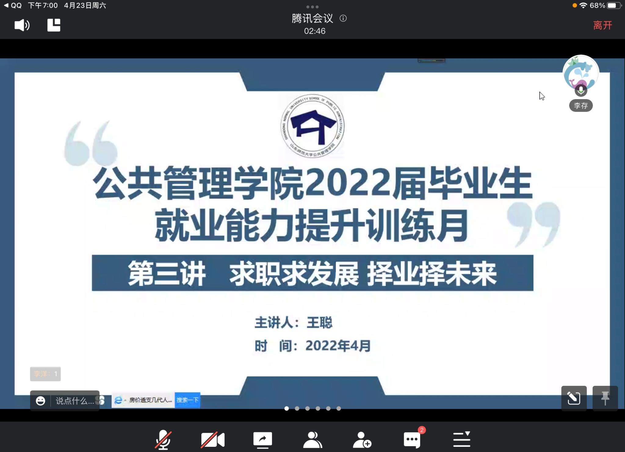 此次线上讲座的顺利进行,加深了同学们对就业相关事项的了解,有助于毕业生们明确就业方向,提升就业能力,同时有利于学院就业指导工作的稳步开展。