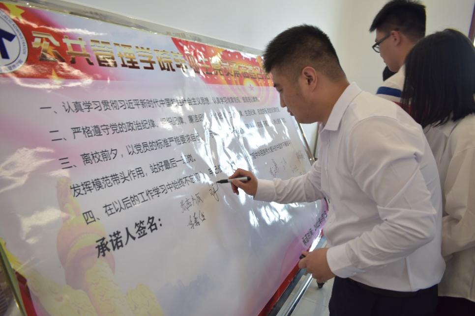 座谈会后,毕业生党员积极参加了毕业生党员承诺签名活动,通过具有仪式感的活动程序强化了党员信念、为奔赴下一站加满了油。本次座谈会在愉快的合影快门声中圆满结束。