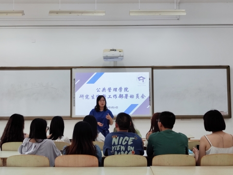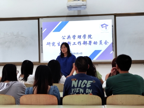 会议进行第二项,李存老师详细介绍迎新工作的准备情况,主要就迎新点的值班工作、新生档案材料的收取、迎新志愿者的工作路线等新生入学报道相关活动作了说明,并对各部门的工作分工做出了细致安排。此外,李存老师还指出,迎新人员应当能够切身从新生的角度出发考虑问题,热心地为新生答疑解惑,帮助新生尽快融入新学期的学习和生活。她强调,迎新工作作为近期工作的重中之重,各位研究生会干部们作为中坚力量需将职责扛在肩上,发挥服务好、工作好的优良作风,为新生展现山师“出彩”公管人良好的精神风貌。