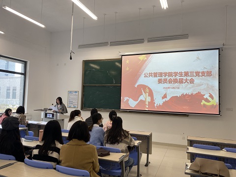 首先,由原支部书记李存同志代表上一届支部委员会对上一任期内学生第三党支部的工作情况作了工作总结。随后,支部委员会换届大会严格按照《中国共产党章程》和《中国共产党基层组织选举工作暂行条例》的有关规定进行大会议程。在支部委员会充分酝酿提名的基础上,经过民主推荐程序产生初步人选,考察无异议后报学院党委批复同意,根据大会选举办法和无记名投票结果,确立李存同志为学生第三党支部新一届支部书记,沈文秋同志为副书记,陈淑琳同志、于梦菲同志和刘媛媛同志为新一届支部委员。