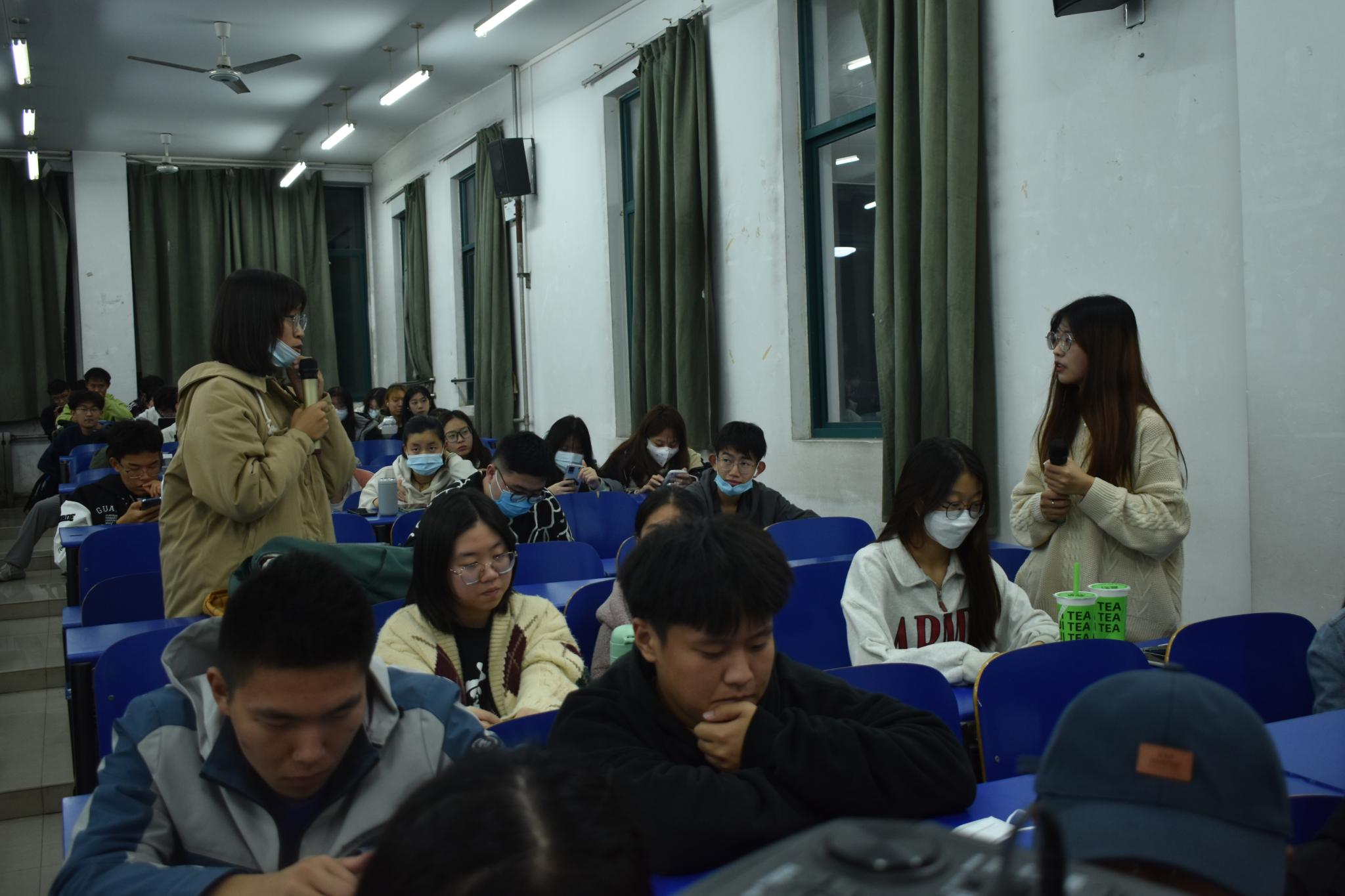 尹晓宇为同学们介绍了“挑战杯”大赛的类型及比赛时间,并建议同学们提前搜集准备各种资料,提出创作主题应基于社会热点且具有现实意义的实用建议。同时向大家介绍了创作思路及选题,强调了优秀选题与规范调研设计的重要性。继尹晓宇经验分享之后,林婧淇为大家介绍了学科竞赛的各种类型,并着重介绍了关于“互联网+”大赛的各种相关知识,她指出“互联网+” 大赛注重成果,建议大家尽早准备。最后由李霖虹分享自己的竞赛经验,她表示参加竞赛可以提升自我能力、保研综测加分、申请奖学金。她建议大家应养成整理竞赛资料的良好习惯,积极参与各种学科竞赛,在奋斗中度过自己宝贵的青春时光。交流会的尾声,现场开始自由问答环节,同学们积极提出个人疑问,三位主讲人对大家的疑惑进行了一一解答。