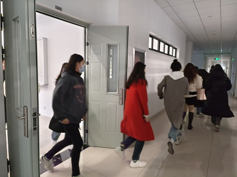 最后,为了深度提升学生参与感,消防演练选择在教学楼内进行。在演练开始之前,辅导员李存就消防演练的事项进行详细讲解,她提出,在演练过程中,在场学生要注意安全,按照标准路线进行逃离,一旦发生突发事件,要及时报告。演练正式开始,在场学生听到逃生指令,有秩序并迅速地离开教室,辅导员李存提醒学生用手替代湿毛巾捂住口鼻,弯腰低姿态沿疏散标识所示方向有序完成疏散。经演练,学生基本可以在规定时间内完成疏散,未出现学生困在出口处或人员聚集踩踏等情况。