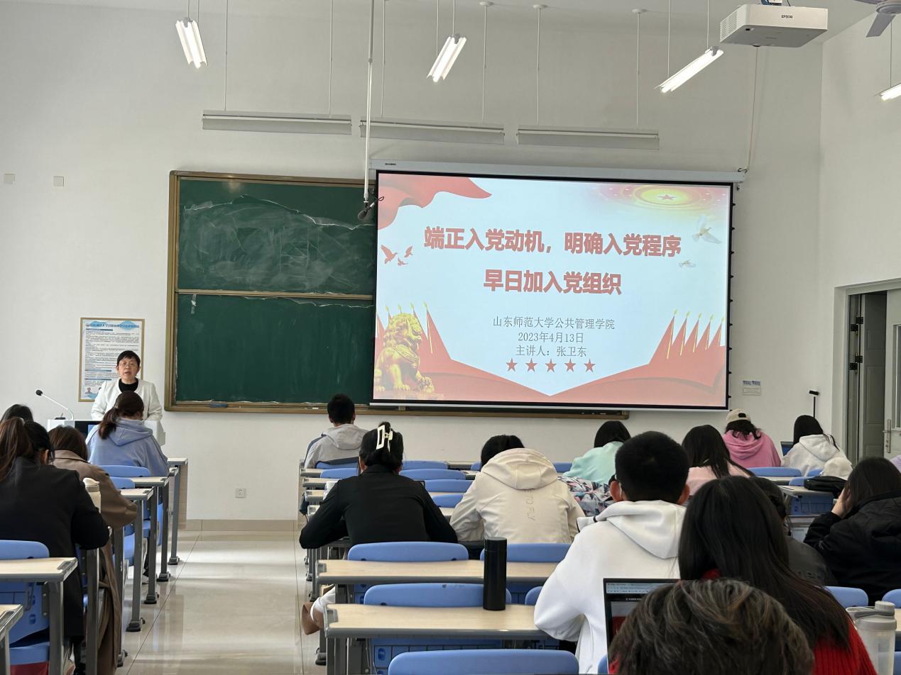 为强化入党积极分子的党性意识,提高入党积极分子的理论素养,4月13日中午,英国365集团于长清湖校区文济楼139教室举办“端正入党动机,明确入党程序,早日加入党组织”主题党课,学院党委副书记张卫东担任主讲人,第66期党基班全体学员积极到场学习。