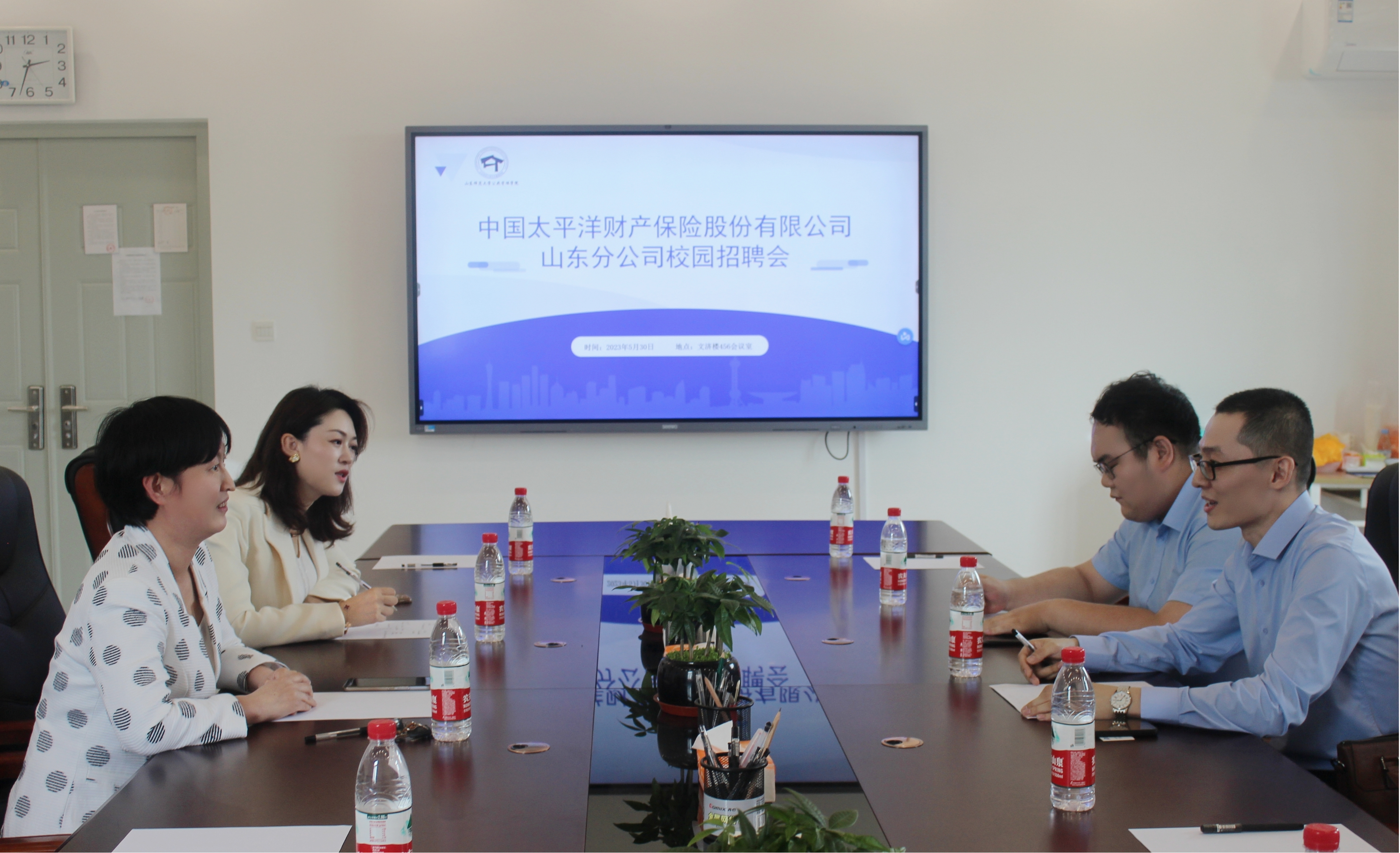 5月30日下午,中国太平洋财产保险股份有限公司山东分公司至英国365集团举行校园招聘会,会议于长清湖校区文济楼456会议室举行,学院党委书记万金凤、2019级辅导员李晓娜接待并出席会议,毕业生代表积极参会。