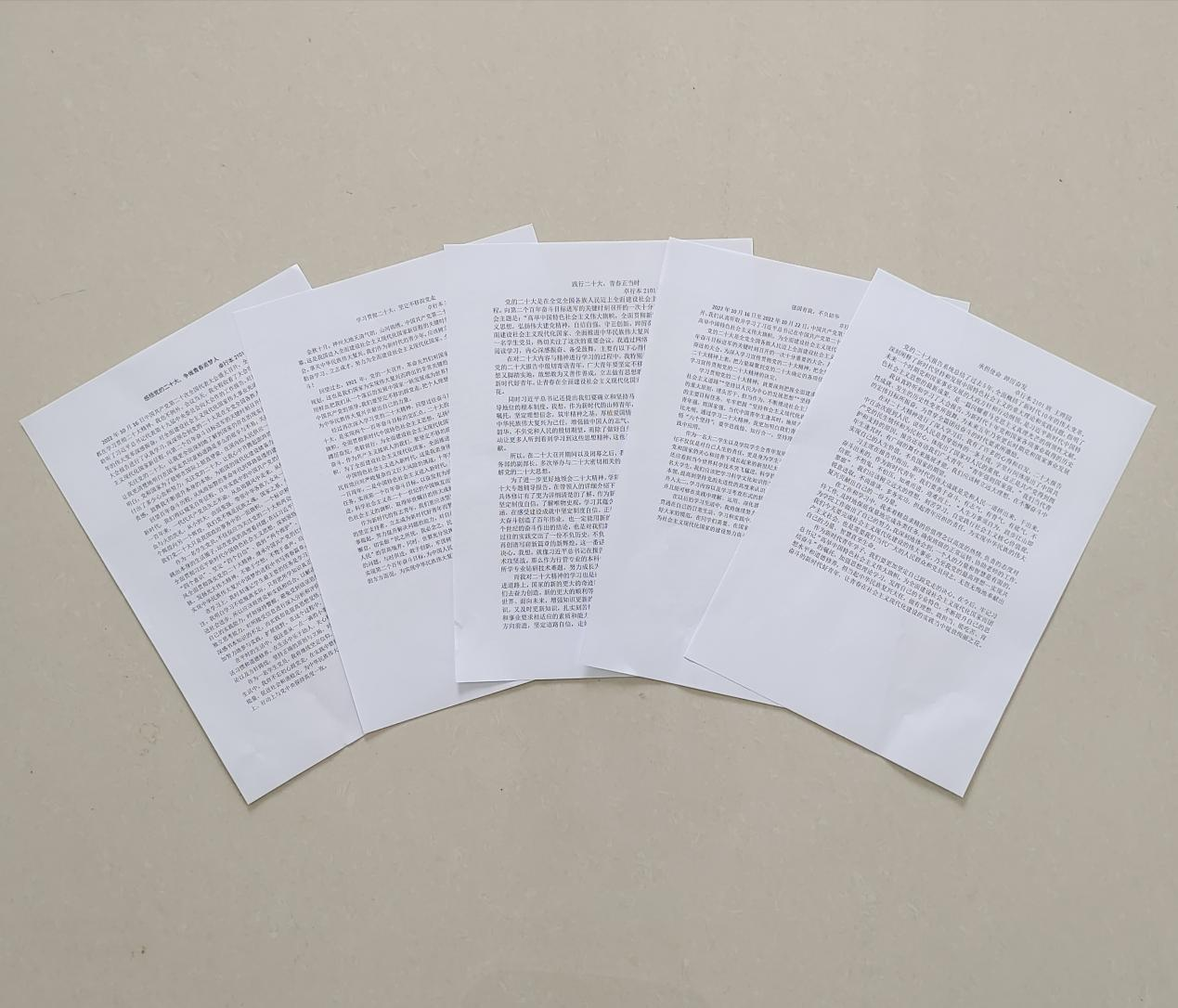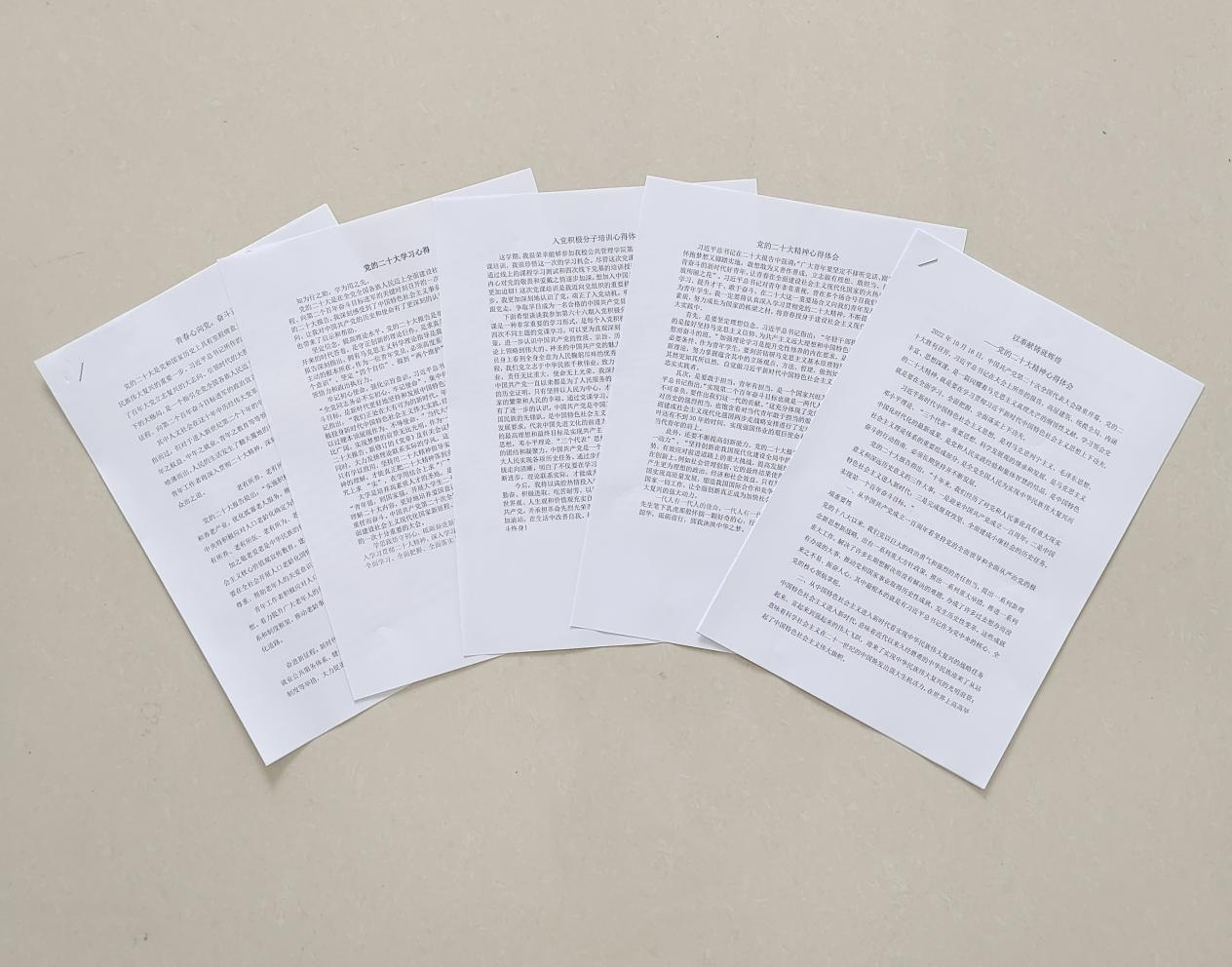 本次活动学院各年级学生积极主动参加,通过原原本本、逐字逐句学习理解党的二十大提出的一系列重要思想、重要观点、重大战略、重大举措,结合专业特点和生活实际,在报告中深入谈体会、谈认识、谈收获,切实做到了学思践悟、见行见效。同学们纷纷表示,通过主题班会、专题报告会、主题党课、社会实践活动等多种形式,深刻感悟了党的创新理论的磅礴伟力,感受到了党的二十大精神的号召,未来将坚定理想信念,树立远大理想,更加自觉地用习近平新时代中国特色社会主义思想武装头脑、指导实践,为新时代的伟大征程汇聚青春力量。同学们主动提交的一篇篇心得体会,展现了学院青年学子的青春风采与力量。