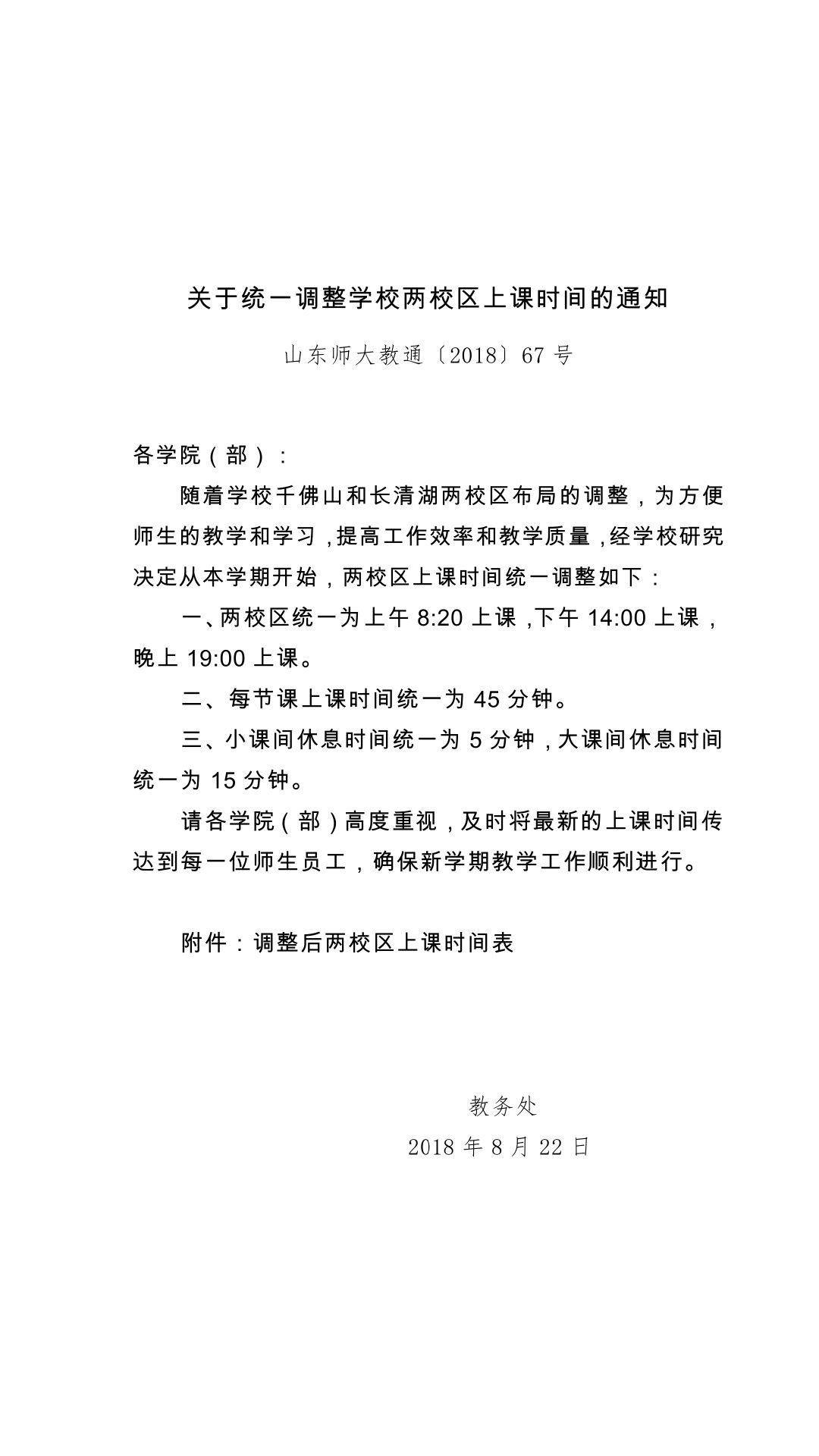 两校区统一上课时间通知