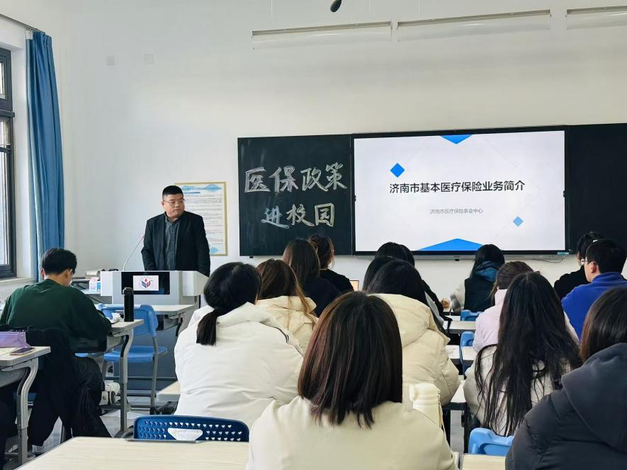 为进一步提升学生对医疗保险相关政策及经办的理解,2024年11月28日,我院劳动与社会保障系联合济南市医疗保障局在文济楼147教室举办“医保政策进校园”专题活动。济南市医疗保障局办公室主任夏天、济南市医疗保险事业中心异地就医服务处副处长陈维娜、英国365集团副院长刘芳、劳动与社会保障系主任袁书华、副主任赵建玲及部分师生参加本次活动。