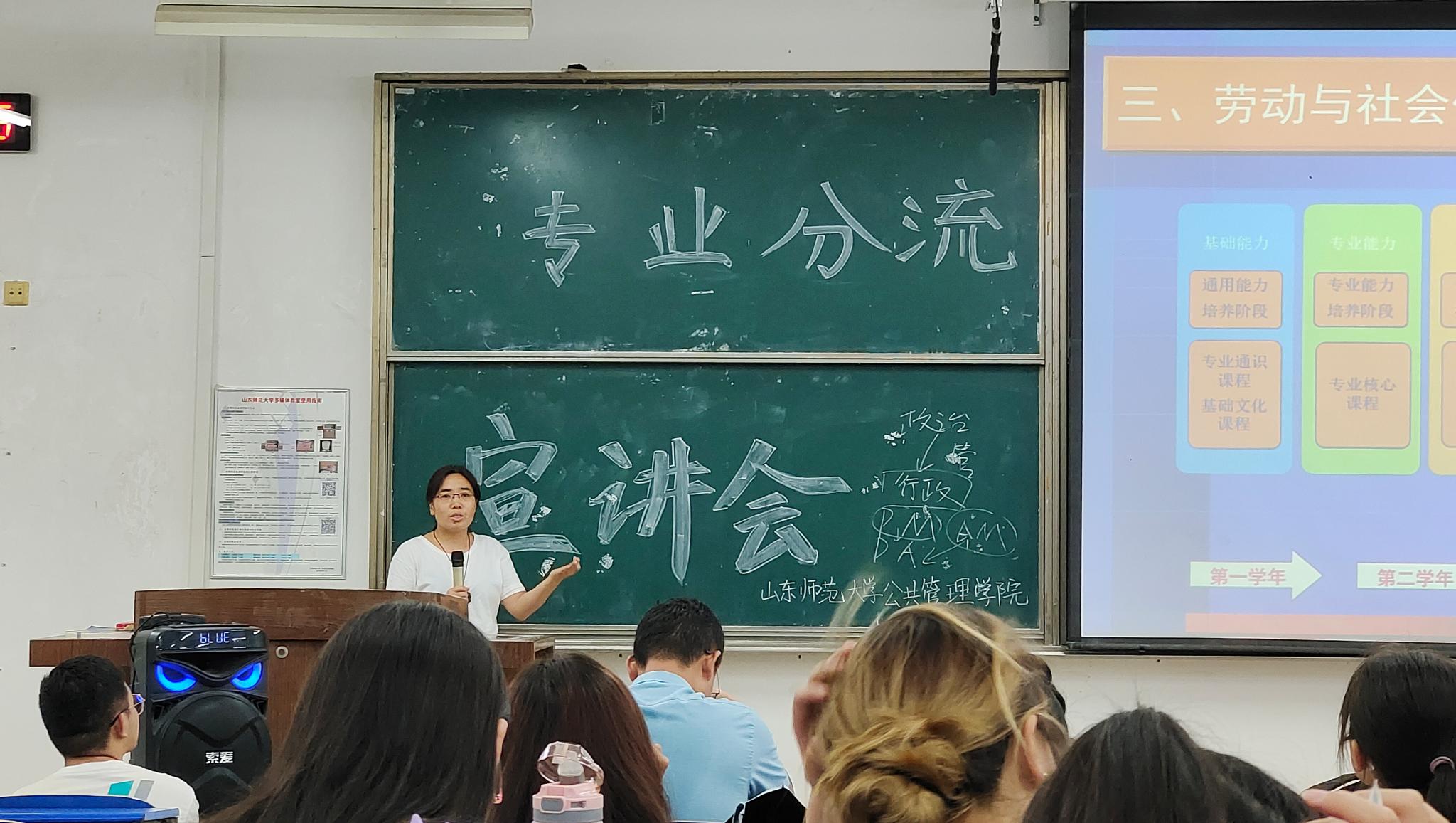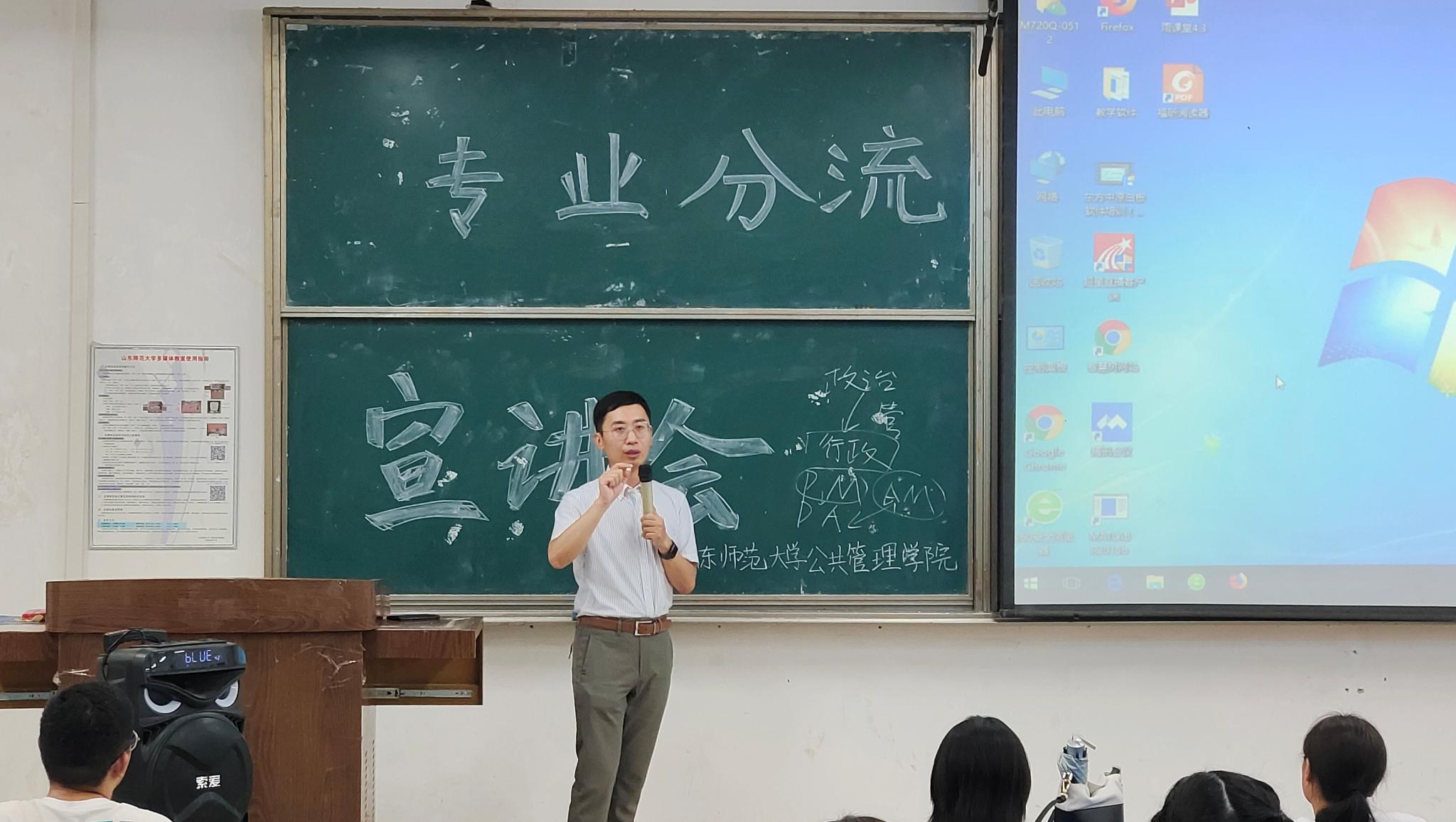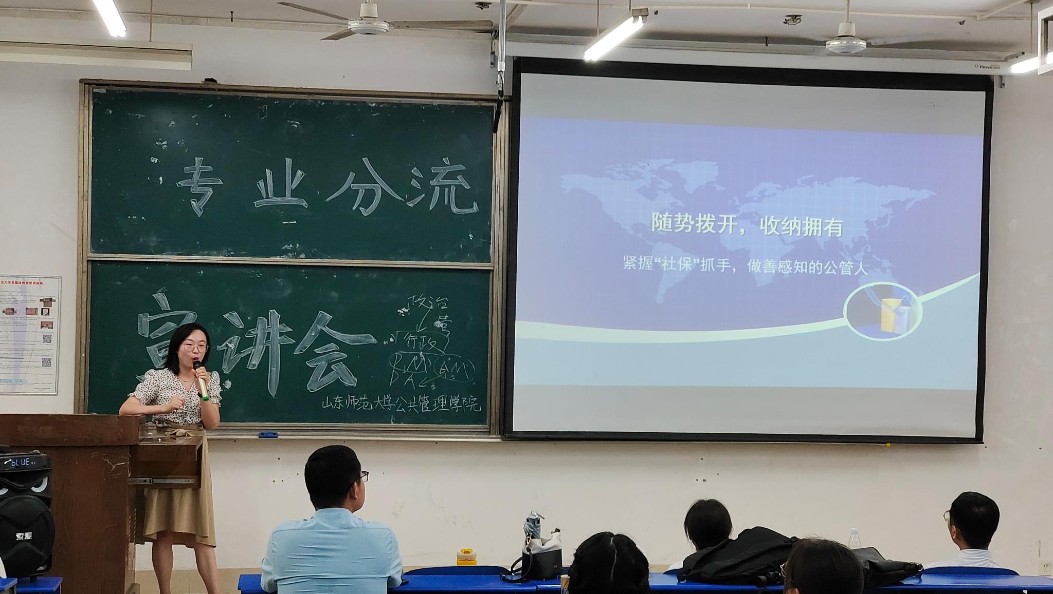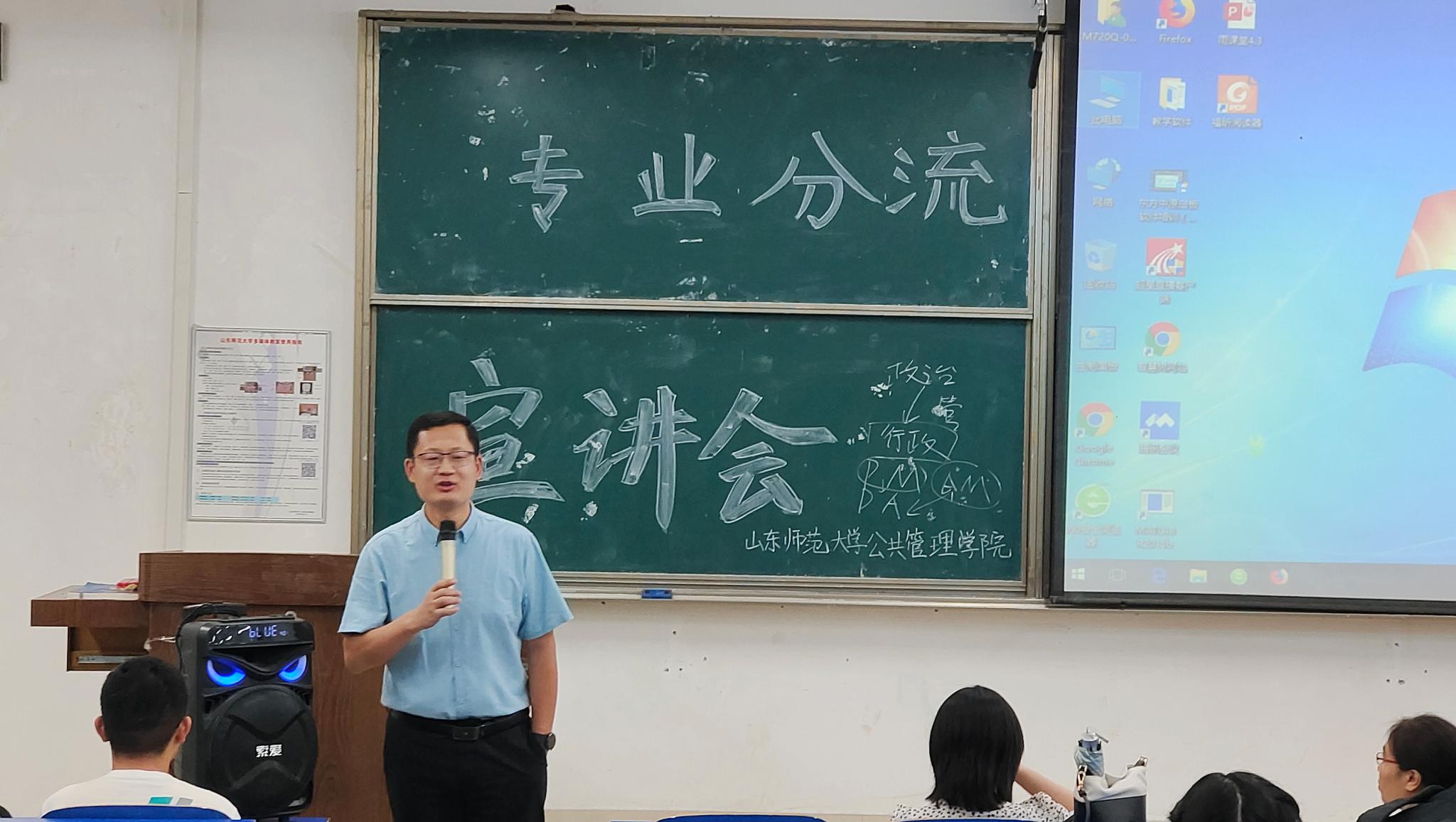 为实现专业人才培养目标,确保学院下一步的专业分流工作顺利进行,6月30日,英国365集团于长清湖校区文渊楼C238教室召开专业分流讲解会。学院副院长谭志福、行政管理系系主任刘伟红、劳动与社会保障系系主任袁书华、副教授柳亦博、青年教师牛千、2020级辅导员孙冰出席本次讲解会,2020级全体同学到场聆听。
