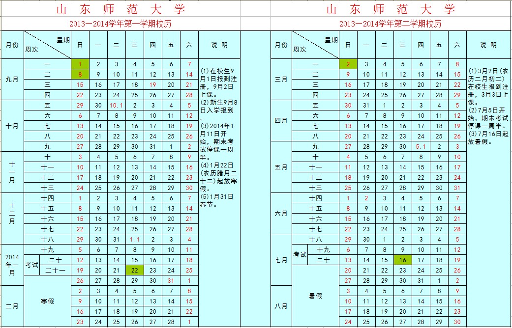 2013-2014学年校历