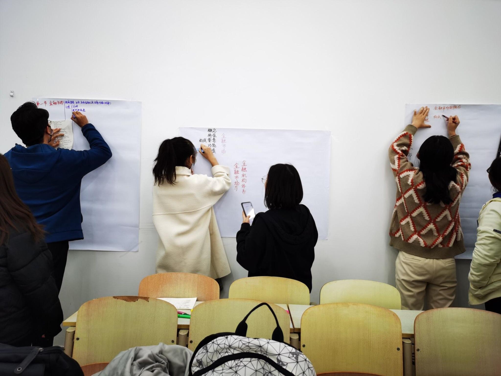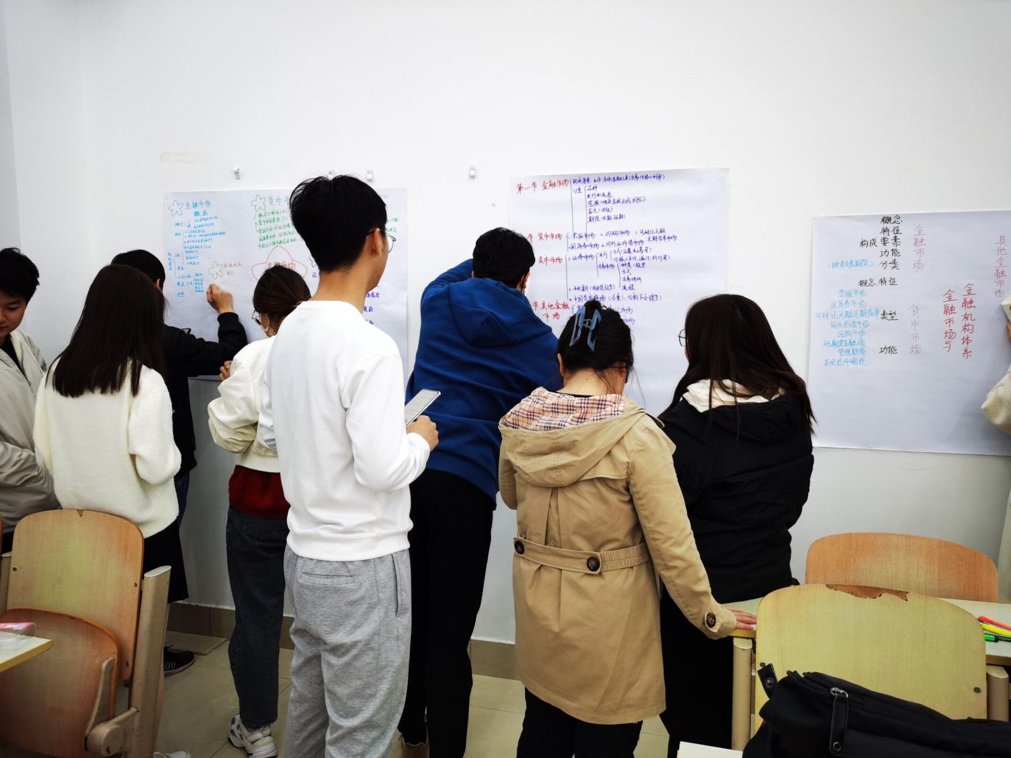 《金融学》教学过程中采用的混合式教学模式有助于同学们更好地吸收理解所学知识,实现教学主体由老师向学生的转变,提升学生自主学习积极性。本次思维导图展览活动的顺利举办,集中展示了混合教学模式的教学成果,不仅加深了同学们对《金融学》专业知识的理解,还体现了同学们的团队配合精神,提高了同学们在制作、展示等方面的综合能力,同时,有利于推动学院学风建设工作质量提升。