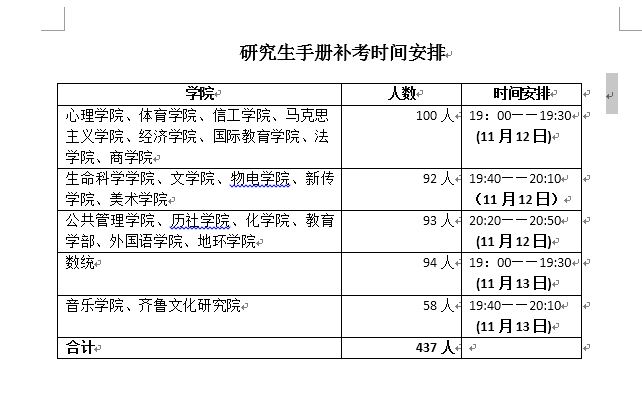 研究生手册补考时间安排,请上次考试不及格或者没有参加的学生,做好考试准备,这次补考再不参加或者不及格,将拿不到开学典礼、入学教育的1个学分(总学分少于38学分无法顺利毕业)、取消研究生综合测评优秀资格。